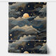 A blue night sky as background, decorated with stars and a moon. Retro style