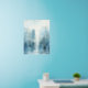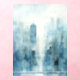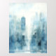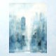 Immerse yourself in the beauty of this abstract watercolour cityscape. The painting showcases a stunning skyline, rendered in a palette of blues and grays. The towering buildings, seemingly reaching for the heavens, are enveloped in a soft, ethereal mist. This modern artwork is a celebration of urban life and a testament to the power of abstract art.
