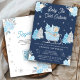 Blue Sleigh Cute Teddy Bear Navy Baby Shower Invitation