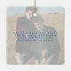 Navy Blue Minimalist Snowfall Photo Text Noise Film Overlay Ceramic Ornament keepsake featuring your personalized photo (squared, landscape or portrait, horizontal or vertical) into snowflakes frame and with white noise film vintage overlay, and your customized holiday, name and text in stylish and modern sans serif font, the font style and colors of ceramic ornament are fully customizable.