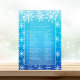 Blue, winter wonderland, snowflake baby shower that is a Baby Candy baby shower game. Beautiful gradient blue background with white, large snowflakes. Templates created for you on back.