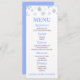 This is a blue snowflake winter wonderland themed baby shower menu.