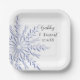 Personalize the festive Blue Snowflake on White Winter Wedding Paper Plates with the names of the bride and groom and date of their December, January or February marriage ceremony, engagement party or bridal shower. These elegant custom winter wonderland theme disposable plates feature an intricate blue snowflake design with a white background.