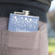 Customize this Blue Snowflake Ski Trip flask with your group name. White snowflakes and dots on a blue background.