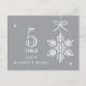 Personalize these mint blue aqua and gray snowflake wedding reception table number cards and postcards with a table number, wedding date and name of the bride and groom. These are perfect for winter wonderland themed wedding or special occasion party. Artwork © Chrissy H. Studios, LLC. All Rights Reserved.