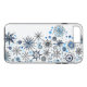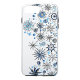A white phone case with a pattern of blue snowflakes and dots, the snowflakes are drawn in a variety of styles, some with simple lines and others with more intricate details, the dots are scattered around the snowflakes, the case is made of a smooth, hard plastic, the pattern is printed on the back of the case, the sides of the case are white, the case has cutouts for the phone's camera, buttons, and ports, the case is designed to protect the phone from scratches and bumps, the pattern is festive and wintery, the case is a stylish way to protect the phone. Watercolor technique.