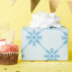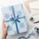 This trendy wrapping paper features blue snowflakes in a square diagonal pattern against a light blue background. Perfect if you're looking for a fun wintry / Christmas holiday design for your gift wrappers.