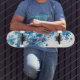 Blue Snowflakes Digital Art Skateboard