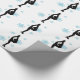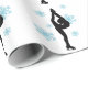 Our Blue Snowflakes Ice Skating Gift Wrap features the black silhouette of a figure skater surrounded by blue snowflakes.