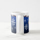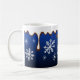 Hot chocolate is dripping down this festive deep blue snowflake mug. The designs are from original art.