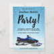 Kick off the bachelor party right with this fun blue snowmobile winter bachelor party invitation. Features a snowy background with a blue snowmobile sled. Any text on this invite is simple to personalize with your own party details. The back is a solid blue color, but you could add your own party details or even a photo with the simple design tool.
