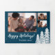 Blue Snowy Pine Tree 5-Photo Holiday Tri-Fold Holiday Card