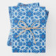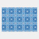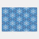 Blue snowy, wintry floral and star pattern wrapping paper sheets