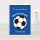 A personalized blue soccer 9th birthday card for son, grandson, godson, etc. You can easily personalize the front of this soccer birthday card with his name and age if it's a different age. The inside reads a birthday message, which you can easily edit as well. You can personalize the back of this soccer birthday card with the year. Great for soccer fans.
