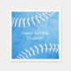 These softball themed birthday party paper napkins feature the stylized, abstractly oversized image of a softball that has been recolored blue with white stitching, upon which you can customize with any text - by katz_d_zynes