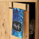 Blue sparkles Abstract Frozen bubbles Monogram Kitchen Towel