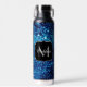 Blue sparkles Abstract Frozen bubbles Monogram Water Bottle