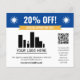 Special offer discount flyer for your small business with a blue banner at the top combined with a smaller yellow banner and bold white fonts. Special offer discount flyer personalized with your logo, QR code, and custom text.