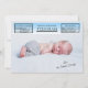 Simply beautiful the perfect Baby Announcement to send to all your friends and family announcing the birth of your child. Featuring a photo on the front with a blue overlay at the top of the photo with time of birth, Birth Date, Pounds, inches, ounces and baby feet with all the baby information.