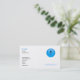 Modern-looking business card template featuring floating blue 3D sphere with keyhole logo. Ideal for data security firms, online investigation agencies or any other organization offering protection or investigative services. Back of card is filled with blue color from logo, for a professional effect.