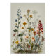Tall blue spires rise alongside vibrant red blooms and sunny yellow flowers in this graceful wildflower arrangement. Delicate white accents and lush green leaves complete the composition on a soft neutral background, capturing the fresh beauty of a summer meadow. This classic botanical illustration brings gentle countryside charm and vivid color to canvas prints, greeting cards, throw pillows, mugs, and home décor.