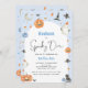 Boy's 'Spooky One' 1st Birthday Party Invitation - spooktacular blue halloween themed first Boo-day Invitation with an arch design. Light blue, orange, black and white with adorable jack-o-lanterns, happy ghosts with party hats, witch hat, black cat, pumpkins, bats, spiders and candy corn. Personalize with your Childs name and party details.