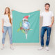 A watercolor drawing of a cute blue and white spotted budgie in christmas style. The bird is sitting on a stick decorated with holly and looks at you with a cute face. He is wearing a christmas hat, You see the parakeet from the front.