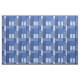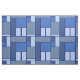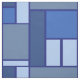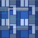 This pattern is created in the style reminiscent of Piet Mondrian. Blue shapes, squares and rectangles outlined in an ultramarine blue border. Varying shades of blue include sky blue, gray blue, and verditer blue. This abstract design focuses on form, shape and color to evoke an emotional reaction, which speaks to our intuition, experiences and subconscious.