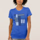 This pattern is created in the style reminiscent of Piet Mondrian. Blue shapes, squares and rectangles outlined in an ultramarine blue border. Varying shades of blue include sky blue, gray blue, and verditer blue.