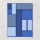 This pattern is created in the style reminiscent of Piet Mondrian. Blue shapes, squares and rectangles outlined in an ultramarine blue border. Varying shades of blue include sky blue, gray blue, and verditer blue. This abstract design focuses on form, shape and color to evoke an emotional reaction, which speaks to our intuition, experiences and subconscious.