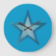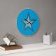 Modern design with a "shining" blue and white star on a blue background. Wall clock with a customizable design for you to personalise with your own text, images and ideas. Please note that this is a printed image created using original photographs and digital techniques, it does not shine or contain real sparkles.