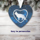Perfect for the GSD owner, this pretty Holiday ornament features a silver silhouette German Shepherd Dog image surrounded by a blue star light night sky. The image is placed within a faux jewel frame heart shape, with a corresponding star light blue border. The back of the ornament has the same blue background, and text for you to customize.