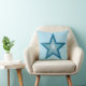 Modern design with a "shining" blue and white star on a pale blue background. Throw pillow with a customizable design for you to personalise with your own text, images and ideas. This is a digital art image created using original photographs and digital techniques and printed onto fabric, it does not shine or contain real sparkles.