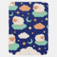Blue Starry Night Cute Sheeps Over Clouds Name Baby Blanket