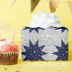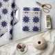 Big blue star with the white stars and with the sparkly gold stars surrounded on wrapping paper.