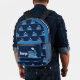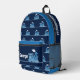 Blue puffing steam train boys backpack. Personalize with your child's name, perfect for library or school. Currently reads George and George on boiler plate plus George - Super Ferroequinologist along the top flap, add your own name maybe your family name class and own message. Part of the kids graphic steam train range. Background color can also be changed to your own color choice currently in dark blue. A perfect gift for boys to take to school or as a gift to a train or railway transport fan. Original steam train graphic art and design by Sarah Trett exclusively for www.mylittleeden.com on zazzle.