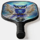 Blue Steampunk Owl Pickleball Paddle