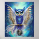Blue Steampunk Owl, this design features a blue steampunk owl with blue eyes.