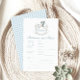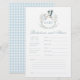 Add a touch of elegance to your baby boy shower with our sophisticated "Baby predictions and advice" game. Featuring a charming stork carrying baby boy in a cute crest and baby blue gingham pattern at the back, this delightful activity is perfect for entertaining your guests and creating lasting memories. Ideal for adding fun and excitement to your special celebration!