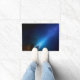 A beautiful transition of blue to bluish white tones and dark blue to black tones along the perimeter under cut with reddish brown tones at the end part of the elongated cube stacks.<br><br>Blue Streak Stack Door Mat