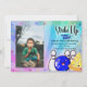 "Strike Up Some Fun", bblue party invitation with space to add child's personalised photo. This invitation is set upon a striking tie dyed (blue) background, using bright trending colors. Fun cartoon characters!