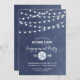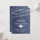 Chic modern summer wedding engagement party invitation design with simple elegant glowing string lights hanging across the top and a classy mix of modern and calligraphy script fonts on a printed faux watercolor texture background. A simple and stylish preppy design, perfect for summer! Click the CUSTOMIZE IT button to customize fonts, move text around and create your own unique one-of-a-kind invitation design.