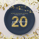 Throw a 20 Year Class Reunion and impress guests with matching paper plates. This stylish plate features strings of lights and "20" in faux gold with "year reunion" in white against a dark blue background. Check out matching invitations and items like stickers here https://www.zazzle.com/collections/school_reunion-119258151199573326?rf=238364477188679314