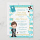 Blue Stripe Brunette Boy First Holy Communion Invitation