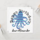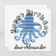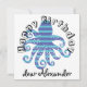 Cool blue horizontal striped octopus with text: Happy Birthday and a name template. Click personalize and change the name to yours.