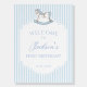 Welcome guests in style with this delightful welcome sign board meant for your warm 1st birthday boy party. Featuring an adorable pastel blue wooden rocking horse surrouded by light blue strypes and vintage styled frame. Perfect for setting the tone for your event and greeting guests with style and charm.
