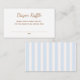 Cute handwritten gender neutral baby shower 'Diaper Raffle' enclosure card featuring soft blue vertical stripes on the reverse side.