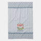 Ring in the holiday season with this customizable kitchen towel that features a simple illustration of holly leaves and berries on a blue and white striped background, polka dots, rickrack, script that reads, “Merry Christmas,” and customizable text that reads, “A Home Baked Holiday.” This design is simple and charming, and it will appeal to lovers of farmhouse, cottage, and country style decor. Change the customizable text to fit your gift giving needs.