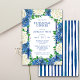 Blue Stripes Hydrangeas Wedding Rehearsal Dinner Invitation