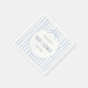 Elegant baby shower napkin featuring soft blue vertical stripes, a delicate scalloped frame, and a charming ribbon detail. This timeless design blends classic and modern styles, perfect for a refined baby boy celebration. Fully customizable with your event details.